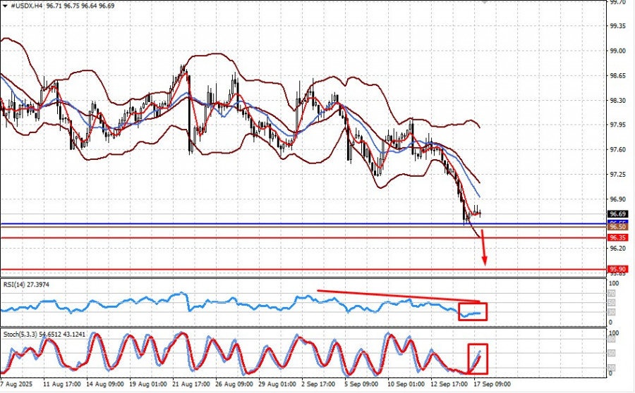 Индекс находится выше отметки 96.55. Любой намек на продолжение снижения ставок ФРС может оказать давление на индикатор, что будет способствовать его снижению к 96.35, а затем и к 95.90 пункта. Уровнем для его продажи может служить отметка 96.50 пункта.