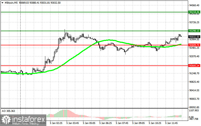 Сценарий №2: покупать биткоин можно от нижней границы $92 600 при отсутствии рыночной реакции на ее пробой в обратную сторону к уровням $93 300 и $94 200.