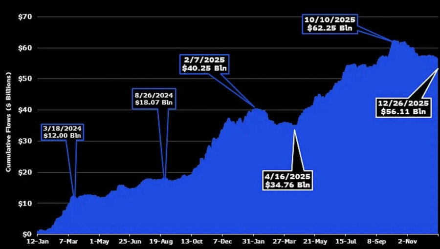 Биткойн долгое время покупали просто потому, что он рос. Как только он прекратил расти, начался отток капитала из ETF. В четвертом квартале он достиг отметки $6 млрд. Инвесторы практически поверили в возвращение криптозимы, а главными пострадавшими оказались криптоказначейства.