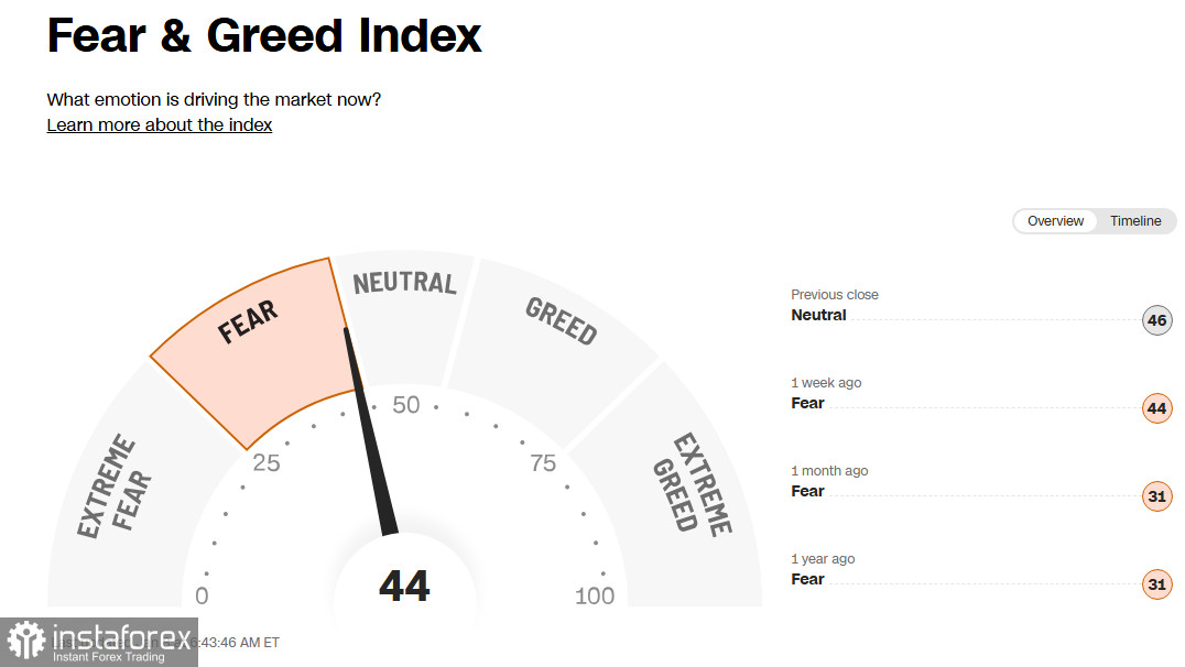 Индекс «страха и жадности» с середины декабря удерживается в зоне «страха» и на 8 января составляет 44 пункта (из 100), что указывает на преобладание панических настроений и эмоциональных продаж.