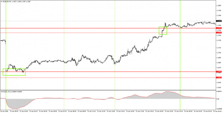 Как торговать валютную пару EUR/USD 14 апреля? Простые советы и разбор сделок для новичков