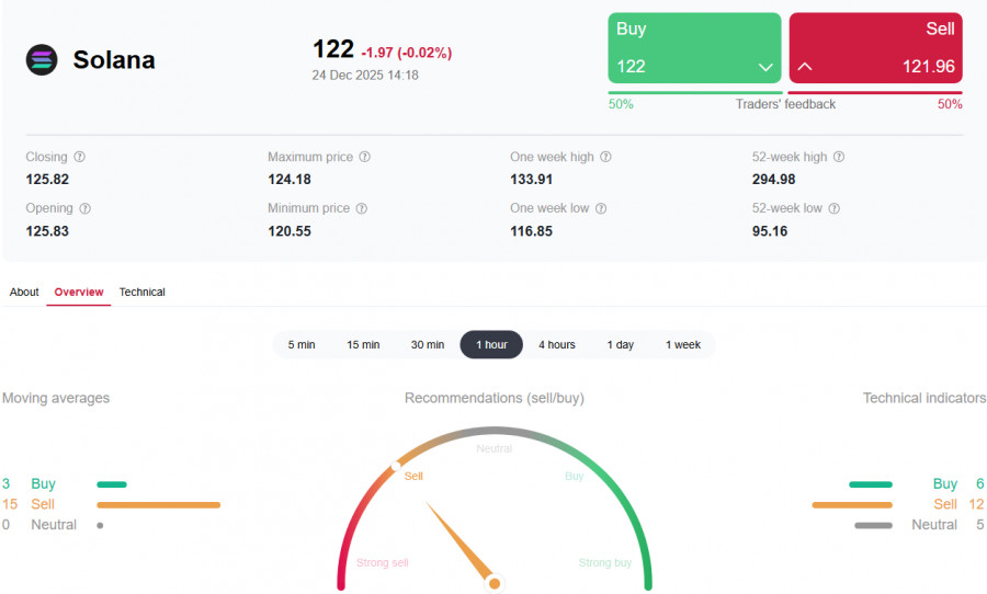 *) см. также: Торговые индикаторы InstaForex по SOLПредстоящий 2026 год станет для биткоина периодом повышенной нестабильности вследствие глобальных экономических факторов и политического риска, отметили мы в нашем сегодняшнем обзоре «Крипторынок: на фоне снижения ликвидности в предпраздничные дни». Отсутствие устойчивого направления движения цен усложняет перспективы предсказуемого развития цифрового актива. Стоимость первой криптовалюты значительно сократилась, упав примерно на 23% с начала октября, когда её максимальная цена достигала отметки в 126000.00 долларов. Сегодняшняя ситуация демонстрирует колебания цены возле уровня 87000.00, что составляет