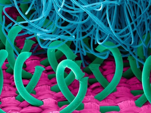 Под микроскопом раскрывается весь секрет ее цепкости. С одной стороны находятся множество жестких нейлоновых крючков, похожих на когти хищных птиц или животных. Другая сторона представляет собой хаотичное сплетение мягких петель, напоминающее запутанные джунгли или густые облака. В момент контакта крючки «впиваются» в петли, создавая тысячи микро-соединений. На макрофотографии этот процесс выглядит как сражение двух разных миров – жесткой геометрии и мягкого хаоса. Это шедевр биомиметики, где простая структура создает одно из самых надежных соединений в мире – липучку для одежды.