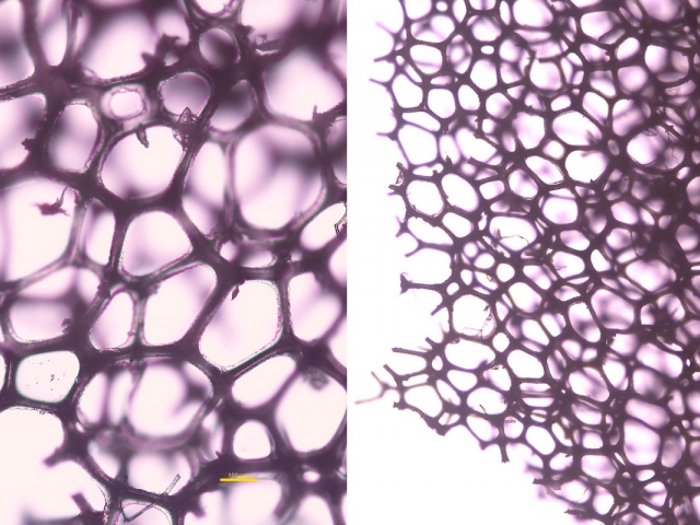 Обычный предмет, которым пользуется каждая хозяйка, под объективом микроскопа превращается в бесконечный, пугающий лабиринт. Пористая структура полиуретана выглядит как переплетение органических волокон или внутренности фантастического существа. Пустоты и пещеры кажутся бездонными, а тонкие стенки между ними – прозрачными мембранами. В таком масштабе этот прозаический предмет напоминает таинственный коралловый риф. А застрявшие в порах пузырьки воды выглядят как инопланетные артефакты. Они запутываются в сети, которая создана для одной цели – впитывать как губка.
