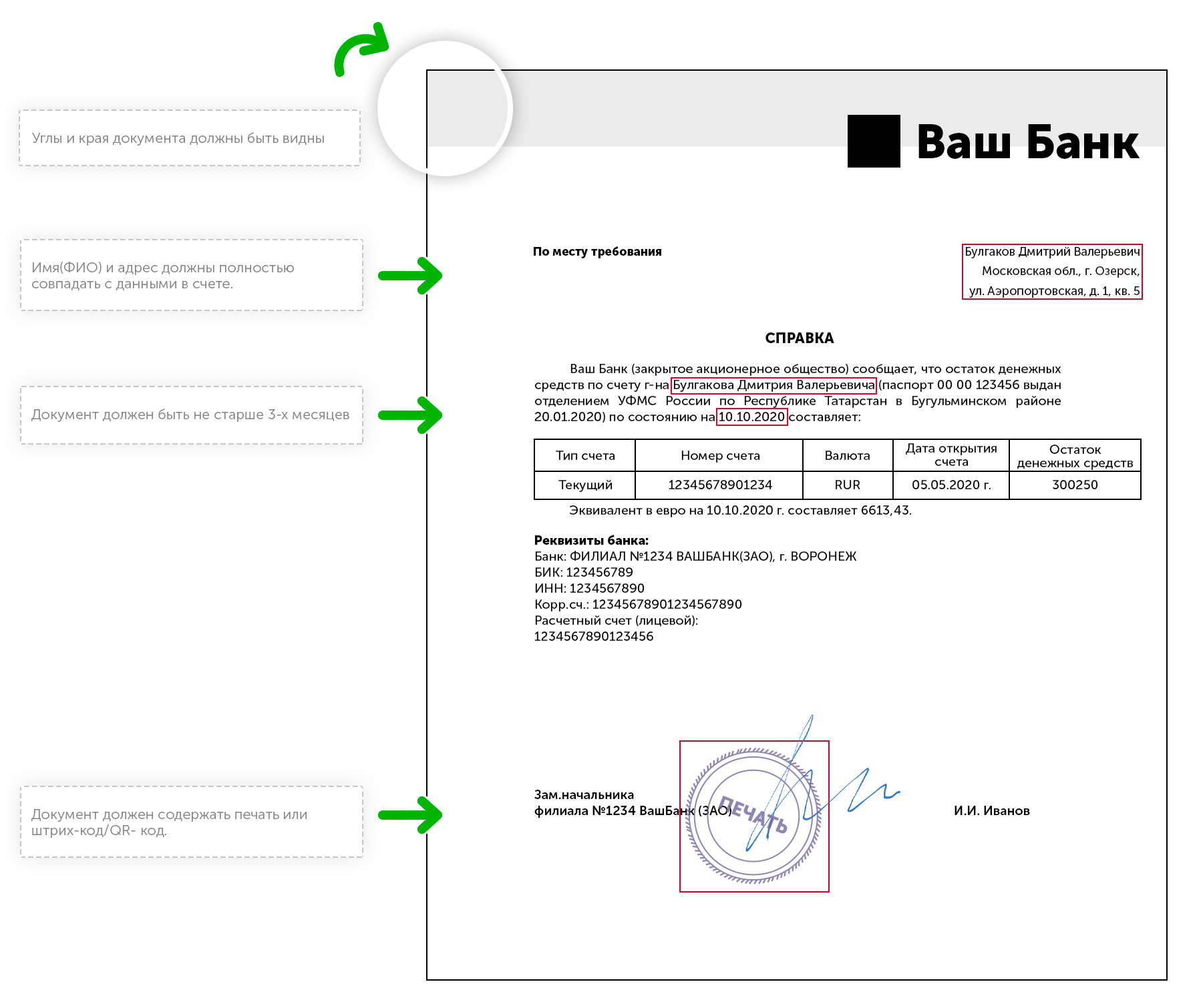 • Убедитесь в том, что документ не старше 3-ех месяцев.